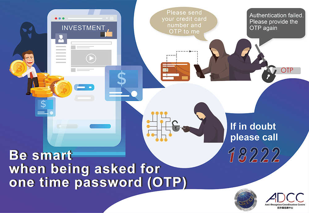 - Meanwhile, victims would receive a verification code via SMS purportedly sent by the company (which is indeed the one-time password (OTP) for a credit card payment), and would be requested to provide the said code for identity verification.