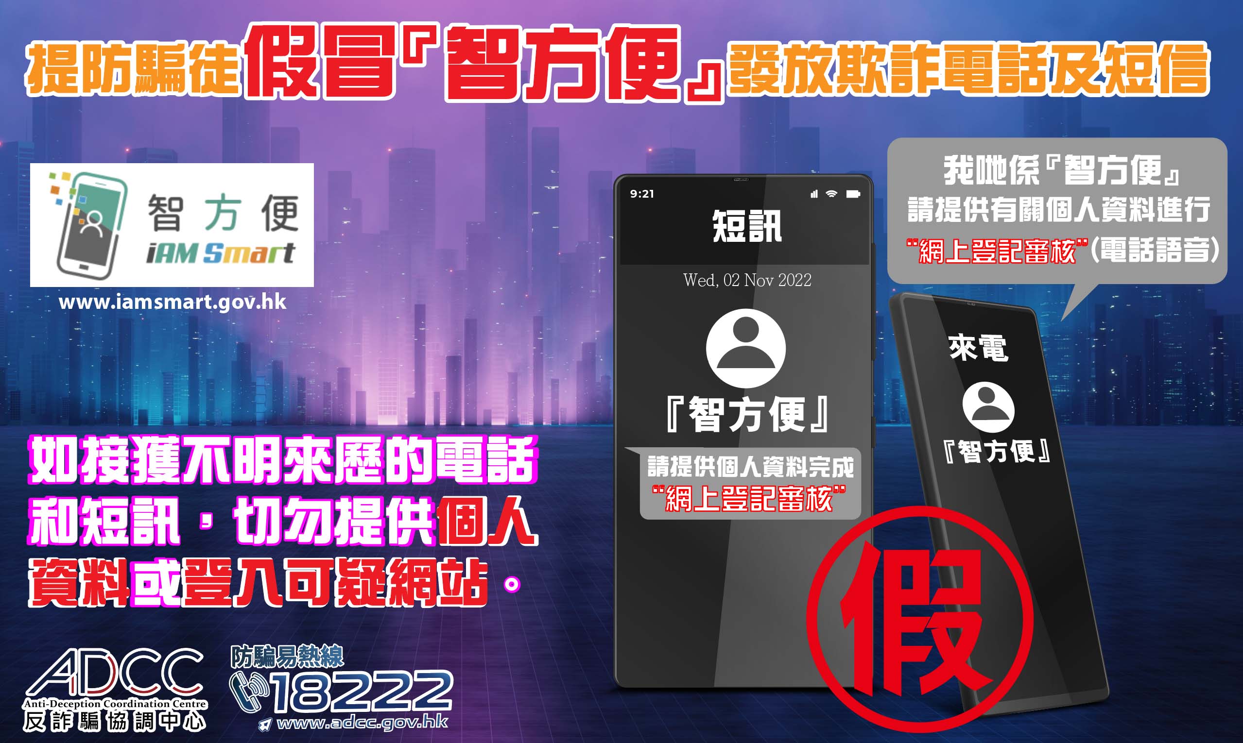 - If in doubt, call the “iAM Smart” hotline at 182 123 or the “Anti-Scam Helpline 18222” for enquiries.
