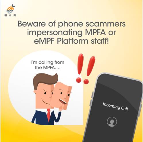 The MPFA and eMPF Platform Company never contact individual scheme members by phone to introduce MPF products/documents or request scheme members to provide their personal information or details of their MPF accounts over the phone;