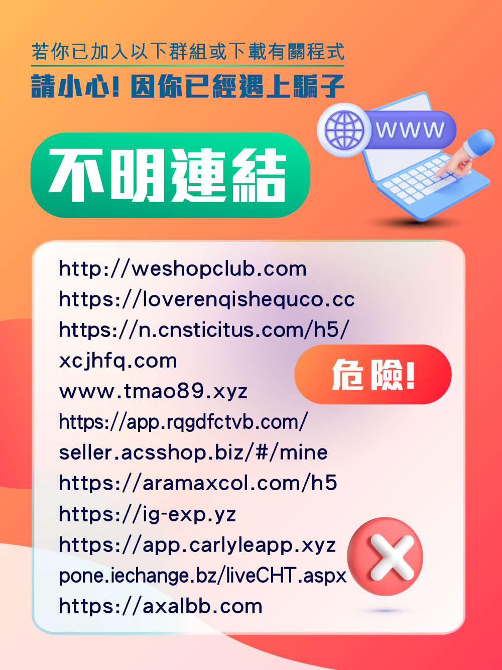 You may enter suspicious phone numbers, web addresses or transferee’s account numbers on “Scameter” or “Scameter+”, the mobile app of “Scameter”, for security check;