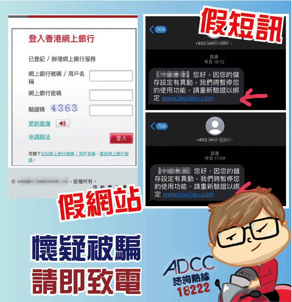 - 如收到声称是由银行发出的可疑电话短讯(SMS)或超连结,应该主动向银行查证;