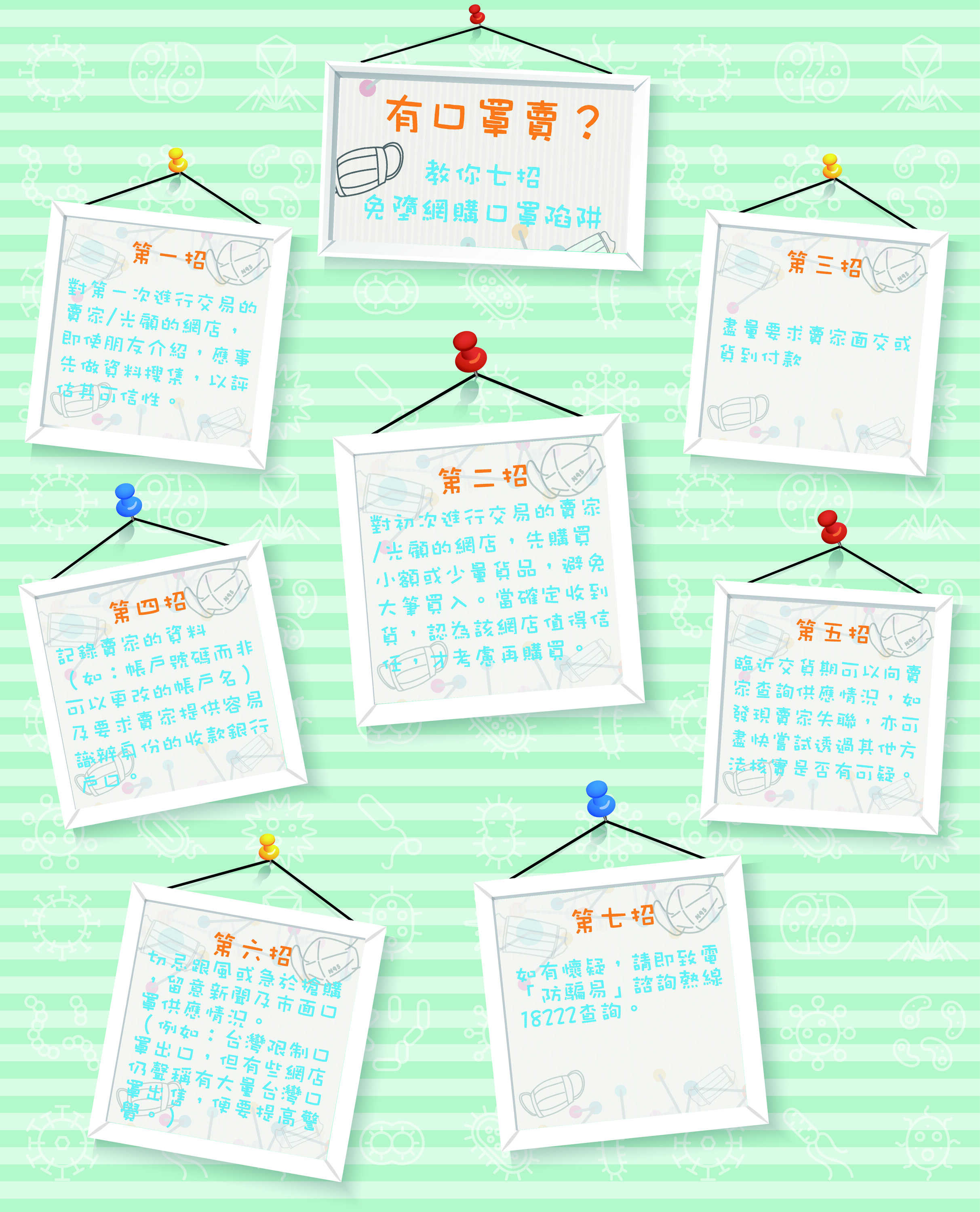 - 切忌跟风或急于抢购,留意新闻及市面口罩供应情况。 (例如台湾限制口罩出口,但有些网店仍声称有大量台湾口罩出售,便要提高警觉。)