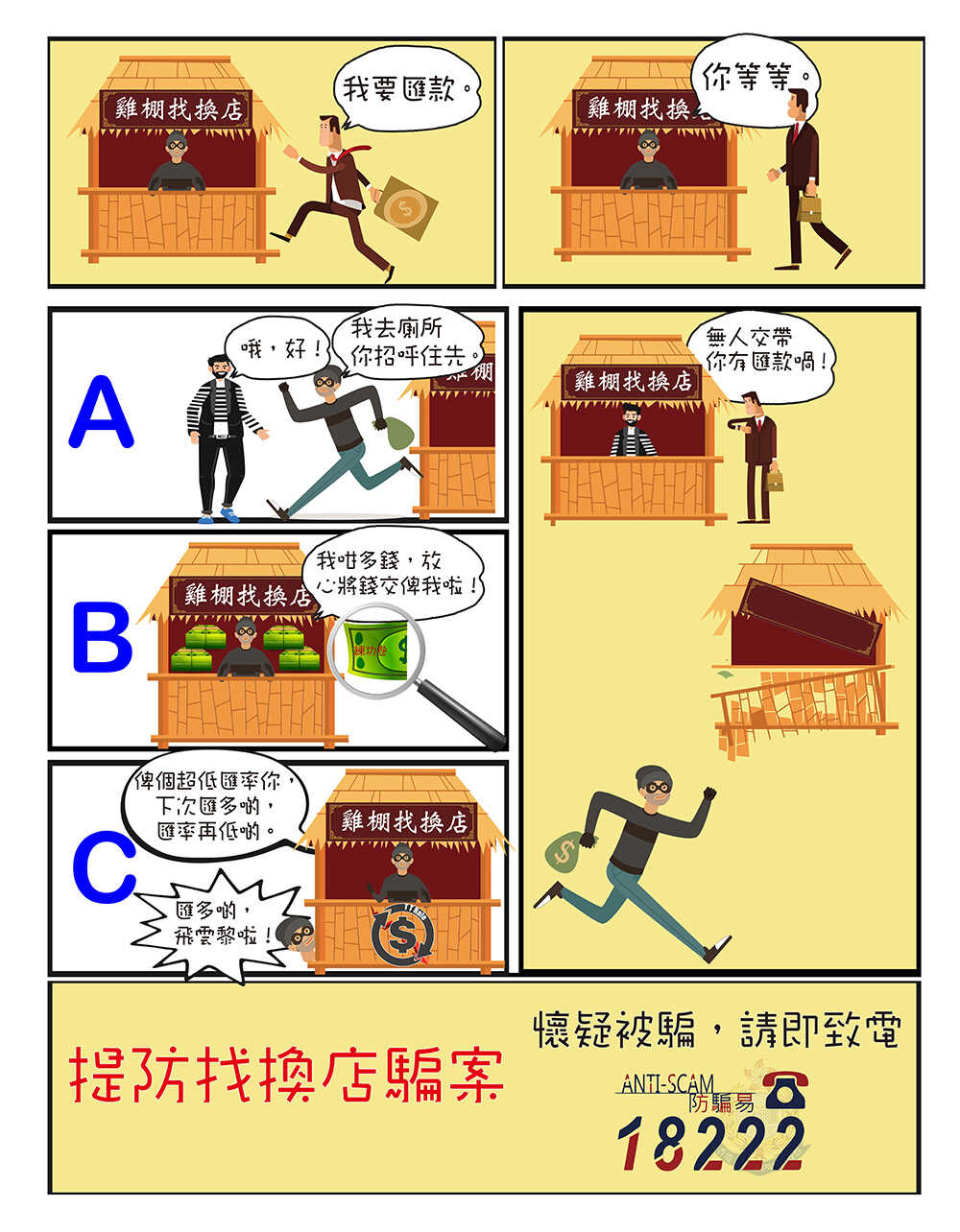 警方近日发现,有骗徒开设无牌找换店,在兑换过程中利用不同借口,骗取款项。