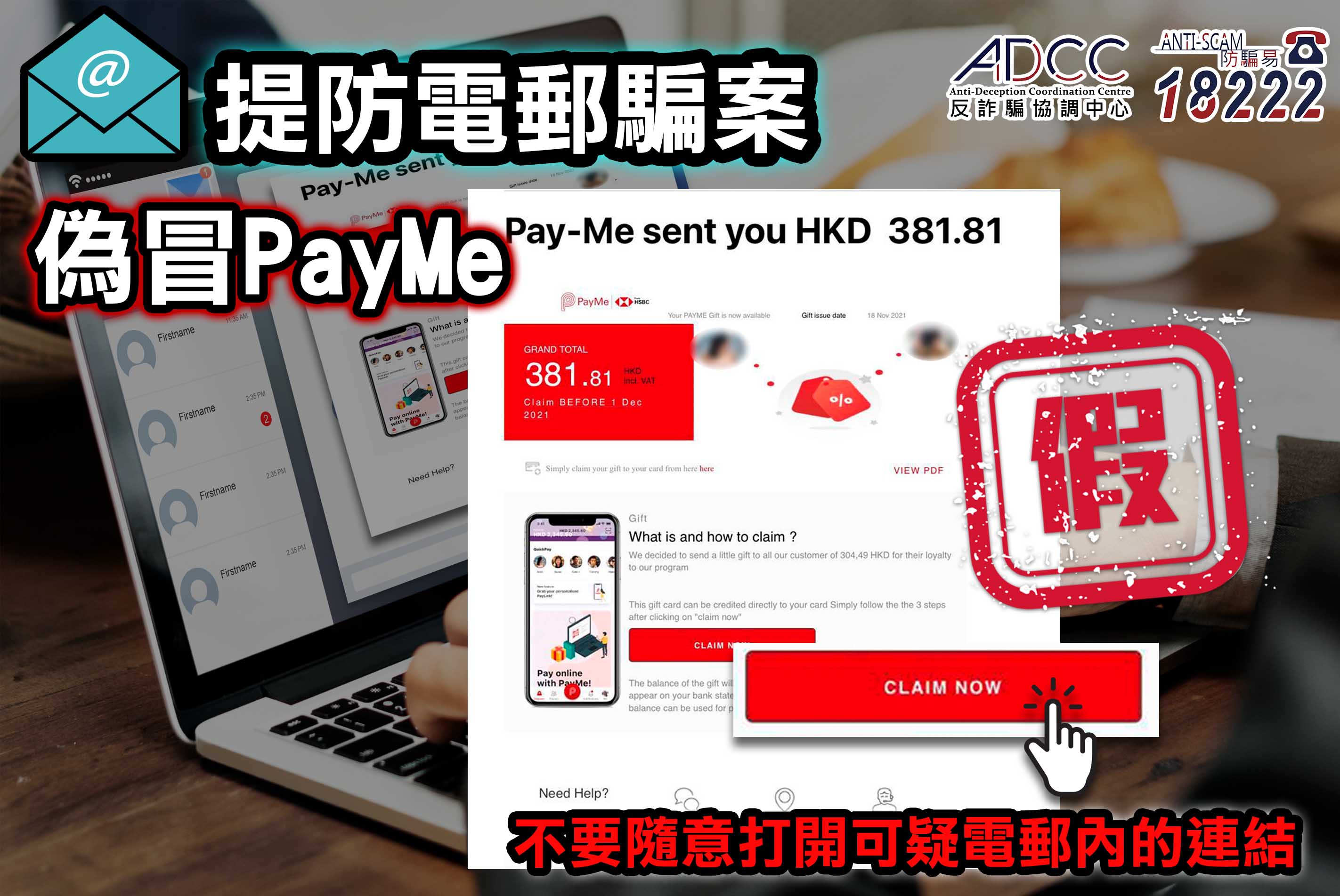 伪冒PayMe电子支付钱包钓鱼式欺诈电邮