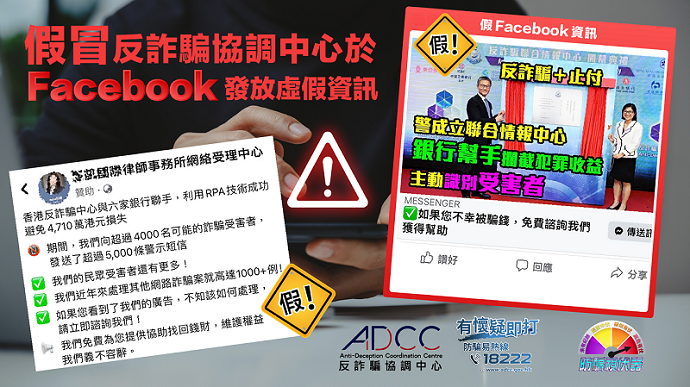 假冒国际律师楼于Facebook发放有关反诈骗协调中心的虚假信息