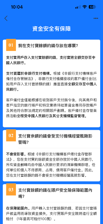 支付宝账户:「我的」-「余额」-「资金安全有保障」