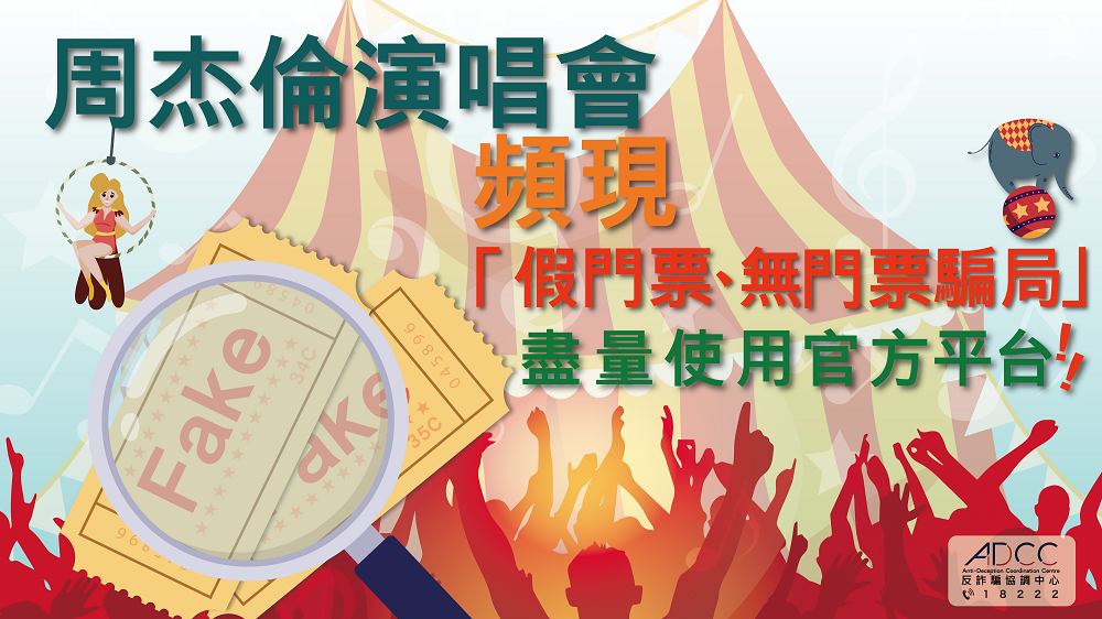 周杰伦演唱会吸引大批歌迷热烈抢票。警方已接获多宗相关诈骗和假票报案,大多在Carousell及Facebook发生。反诈骗协调中心特此呼吁市民警惕七大购票陷阱。