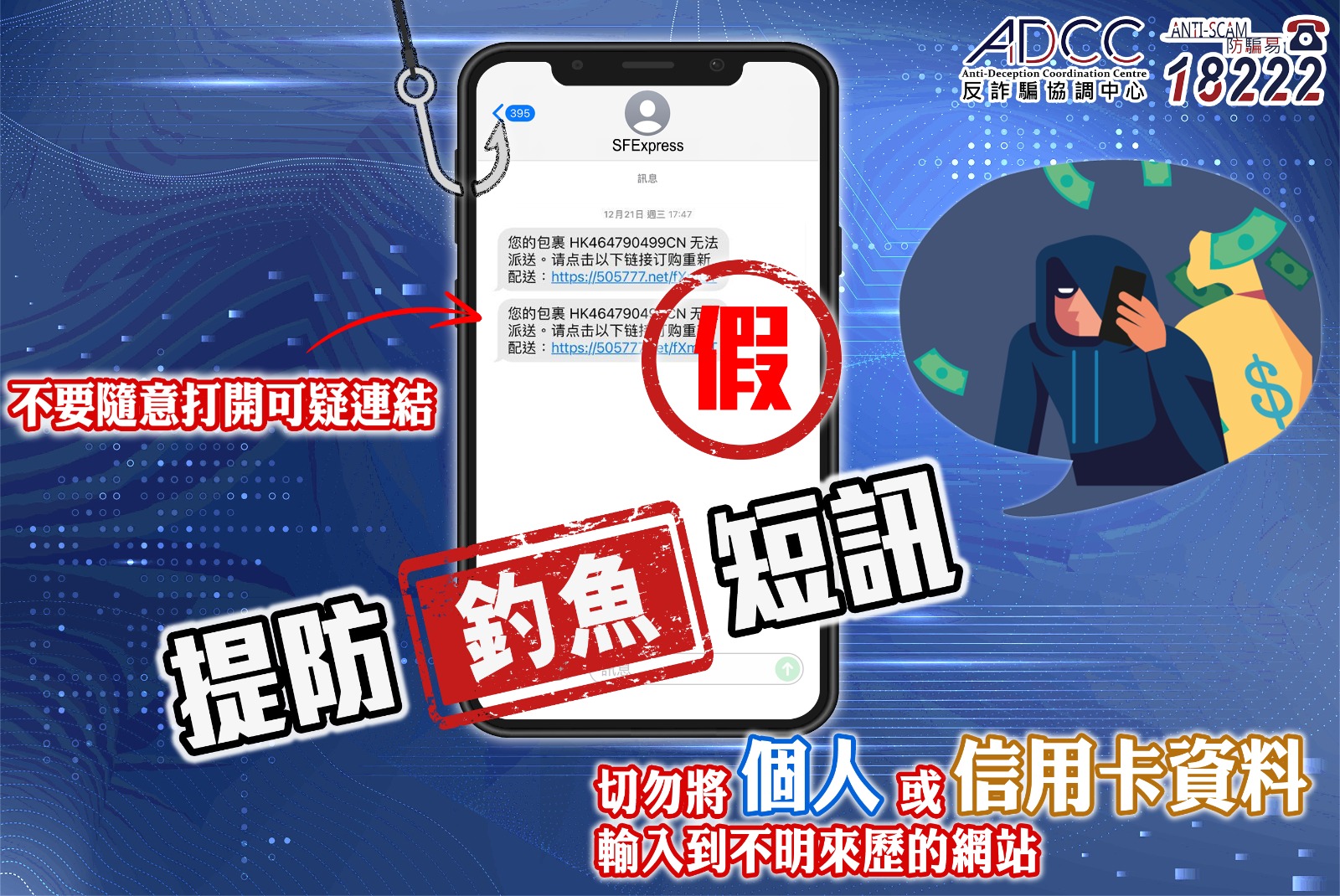 - 如有懷疑,請致電「防騙易熱線18222」查詢。