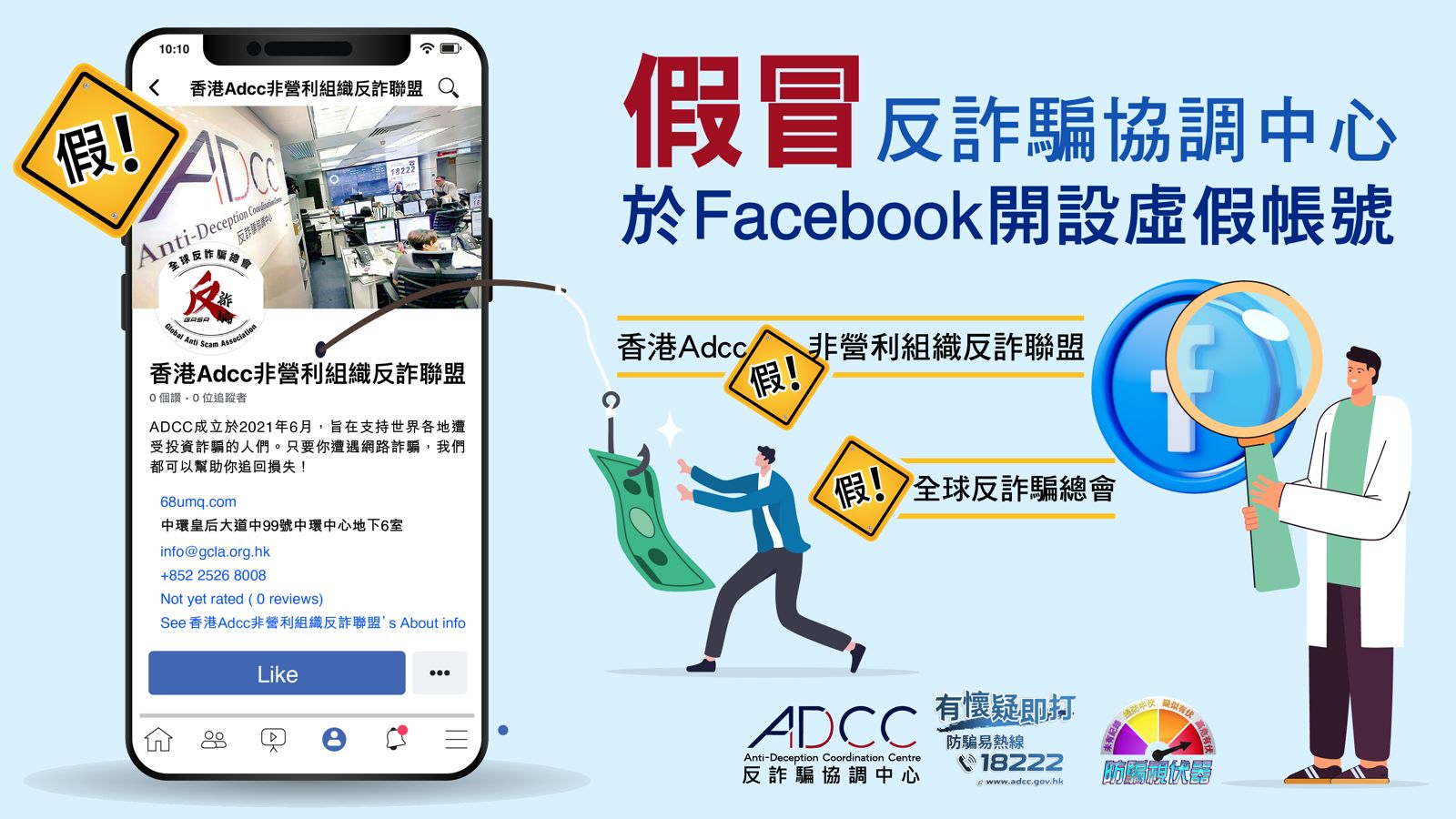 近日,有騙徒再次使用反詐騙協調中心的標誌,以「香港Adcc非營利組織反詐聯盟」名稱在Facebook開設帳號,聲稱是「全球反詐騙總會 Global Anti-Scam Association」,並發布虛假廣告信息,訛稱可為遭遇網絡詐騙的市民追回損失。