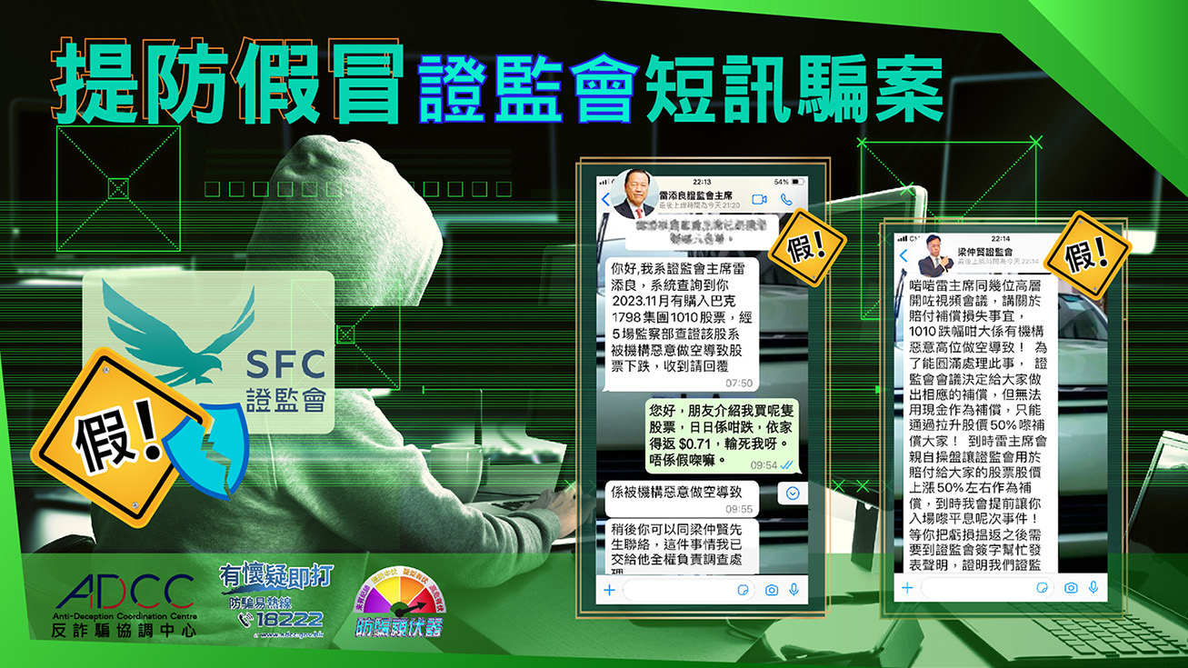 證監會已發出新聞稿澄清該些訊息全屬虛假,並提醒市民慎防受騙。