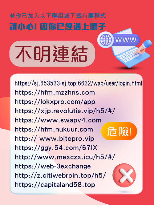 切勿隨意點擊可疑短訊、電郵或網頁內的超連結,以登入任何網站或下載附件;