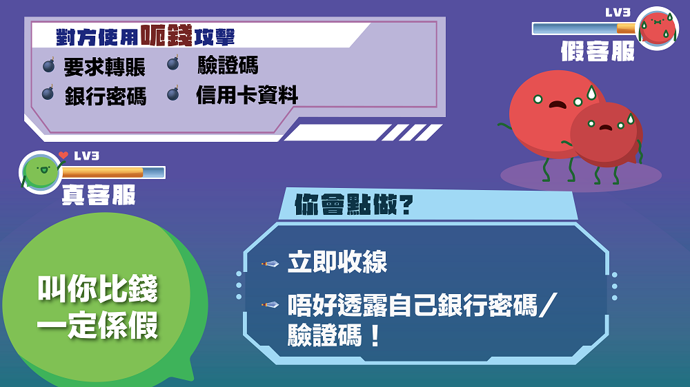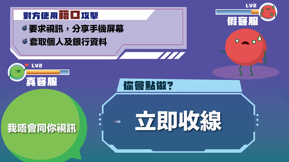 - 如有懷疑,應致電「防騙易熱線18222」查詢。